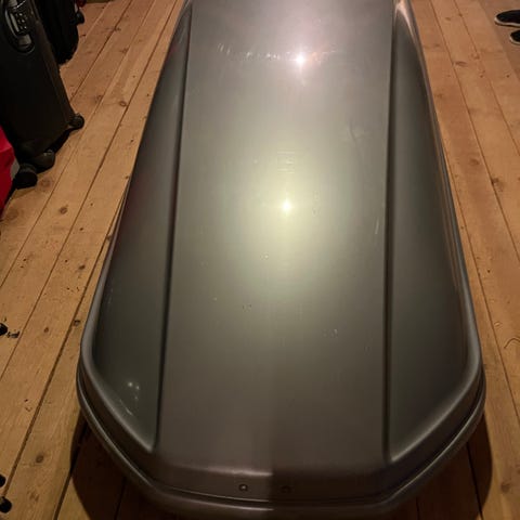 Camtek tagboks til bil, lavet i gråt materiale. Tagboksen er designet til opbevaring på bilens tag og har en lukkeanordning for sikkerhed.