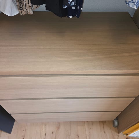 Pæn kommode med 3 store skuffer samt en indvendig mindre skjult skuffe. Passer rigtig godt ind i et lyst miljø i soveværelset eller entréen.