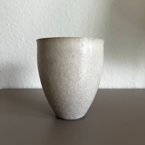 Saxbo Keramik skål med rund form og brun glasur. Skålen har en rustik finish med stribede mønstre og en åben top. Den er velegnet til dekoration eller opbevaring af små genstande.