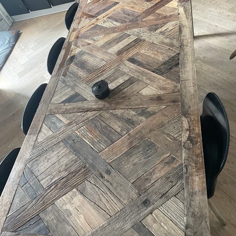 Dette bord er ikke bare et møbel; det er et statement piece med industriel charme, der passer perfekt til moderne, rustikke eller skandinaviske indretninger eller som midtpunktet i et orangeri. Det har været hjertet i vores hjem, og nu kan det blive dit!