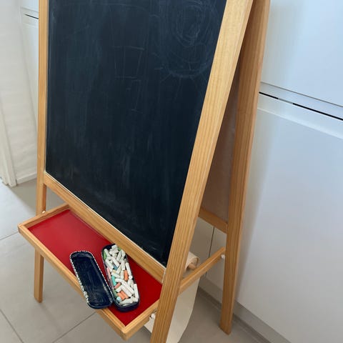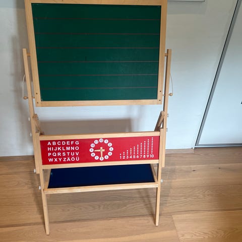 Tegn med kridt på den ene side og bruge magnet bogstaver på den anden side. Der medfølger to kasser med bogstaver og tegn. Perfekt til den lille nye der er startet i skolen og skal lære at blive fortrolig med tal og bogstaver.