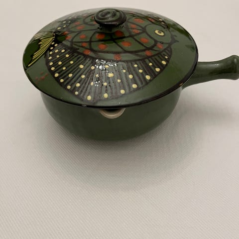 Den kan tåle ovn, så kan evt bruges til at bage en postej og andet i.