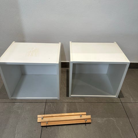 Der er nogle enkle skrammer men ikke noget som spottes med der samme. Kasserne er grå og hvide der er 2 af hver. Sælger dem samlet. Den skal hentes hjemme hos mig. Jeg bor i Kolding.