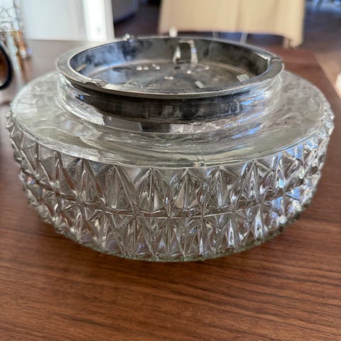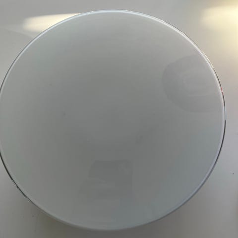 Måler 27 cm i diameter og 11 cm høj - lidt hvid maling på underdelen- ses ikke når den er hængt op! Pris 350 kr