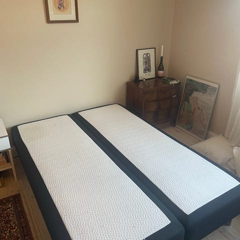 Ikea seng 140x200cm. Hyllestad boxmadras og Tustna topmadras.