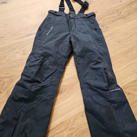 Skibukser med justerbare seler og lommer med lynlås. Vatteret foer. Størrelse er 14. Brugt på kun 2 skiferier.