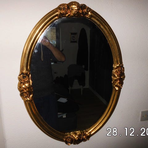 Facetslebet guldspejl 70 x 90 cm. Kan vende på begge led. Fra hjem uden røg. Skal hentes i 8520 Lystrup. Betaling med mobilpay ved afhentning