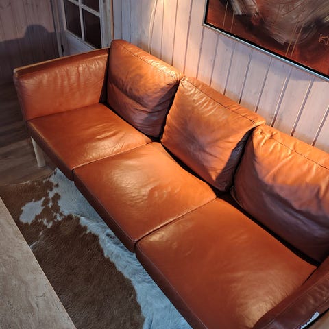 Klassisk sofasæt. 2 personers sofa. 2 øreklapstole. Man sidder HELT fantastisk i dem. God rygstøtte og faste sæder.