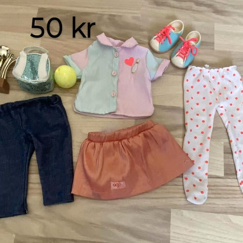 Dukke samt forskellige tøj sæt til fine aftenslege.