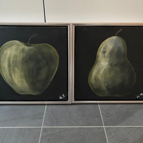 Sæt bestående af 3 små malerier med abstrakte bymotiver. Hvert maleri viser forskellige huse og figurer mm. Mål ca. 18x24 cm.