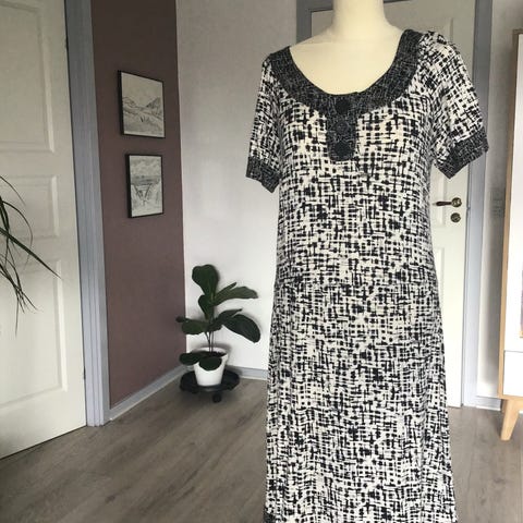 Comeng Hverdagskjole i sort farve, størrelse L, lavet af 100% viskose materiale. Kjolen er designet til kvinder og egner sig til hverdagsbrug.Købt som str XXL lille i str Længde fra skulder og ned 98 , brystmål 105 Sender gerne dog ikke som Fiks og færdig