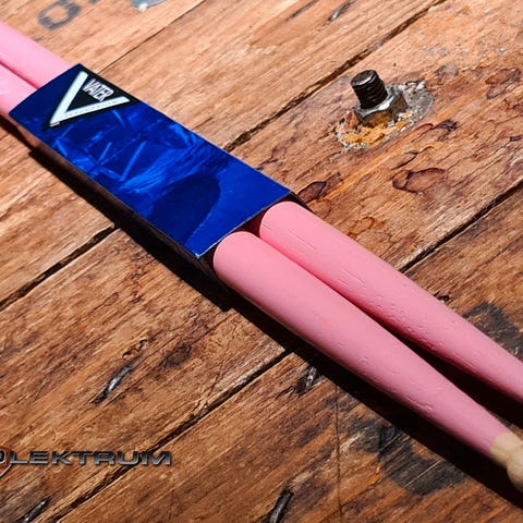 Trommestikker og børster i forskellige størrelser og materialer. Der er en Metronom korg med + taske.