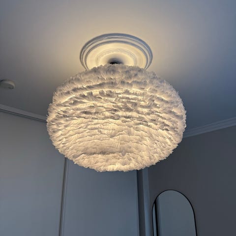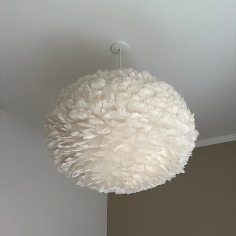 Denne flotte EOS fjerlampe er Ø65cm. Den er så flot. Men jeg fortryd og har købt den samme i anden farve. Den er næsten som ny. Nypris 2700kr. Salgspris 500kr.