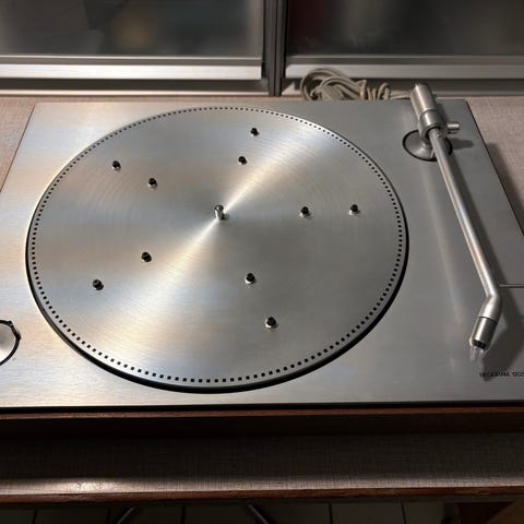 Bang & Olufsen Beogram 1203 pladespiller med aluminiumsplade og tonearm. Designet til afspilning af vinylplader med præcis lydgengivelse.