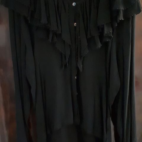 Sort skjorte med flæser og metal nitter str. M/L