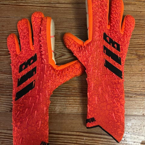 Nike fodboldmålmandshandsker i sort og guld. Handskerne har en justerbar rem ved håndleddet for bedre pasform og støtte. Indersiden er hvid, med ekstra godt greb om bolden.