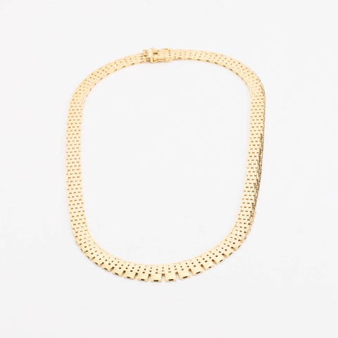 Guld Halskæde i 14 karatEstimeret nypris: 45000,00 kr\nModel: Mursten\nVægt: 23.7 gram\nLængde: 44 cm\nBredde: 4.8 mm\nStand: Som ses på billeder, god stand med almindelige brugsspor og slidtageHos anotherslegacy.dk får du:\n✓ Gratis fragt på alle produkter\n✓ Pakken sendes inden for 1-2 dage\n✓ Din pakke er forsikret under transport\n✓ 14 dages guld bytte- og returretHos anotherslegacy har vi høje standarder, til de produkter vi sælger:\n• Alle produkter er blevet ultralydsrenset\n• Alle produkter er gennemgået for fejl og mangler\n• Alle produkter har fået en lødighedstest i røntgen maskine. Vi sælger IKKE forgyldte genstande\nBook en fremvisning i dag.Butik:\nH. C. Andersens Blvd. 38 st. tv., 1553 København V\nMandag-Fredag 09:00-17:00\nGG153145
