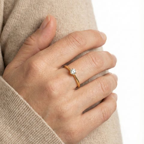 Solitairering i 9K guld med zircon, Str. 58-Guld