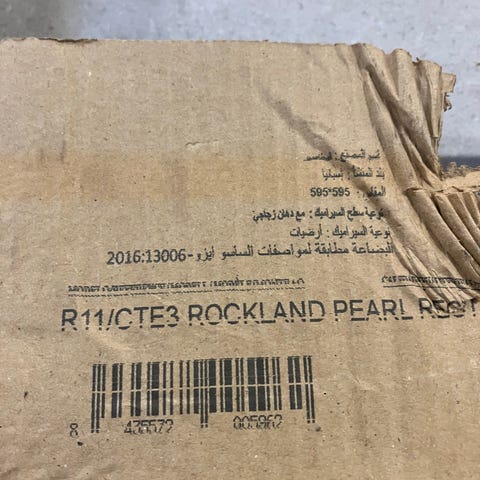 Uglaseret keramisk klinke til gulv og væg 59,65x59,65 cm. Hvid med grå/sølvfarvet aftegninger. Mål:596,5x596,5x8 mm. Klinken sælges pr. m²