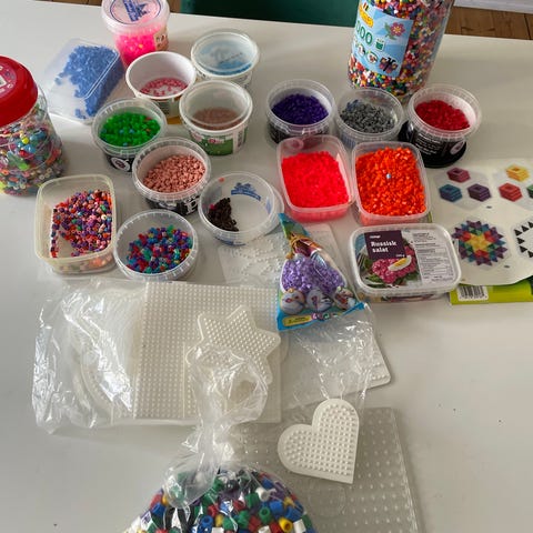 Smykkefremstilling, Træ-, Plast- og Glasperler og tilbehør, Diverse bl.a. Hama, Bindeez, Materialer til hygge og aktivitet::