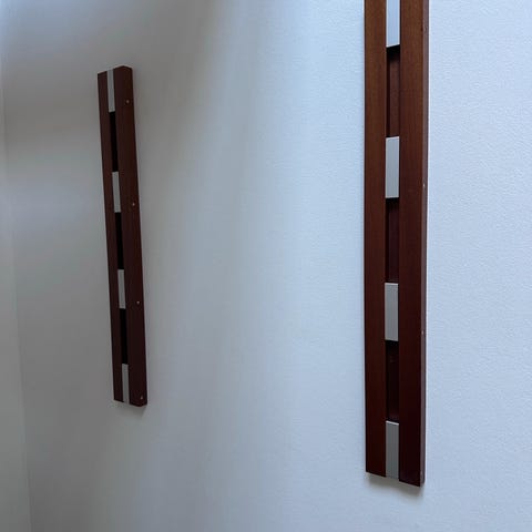 samt grå knager. Den er stilfuld og dermed kan den bruges i mange indretninger. Brug knagerækken i entréen, stuen, soveværelset eller måske køkkennet. Knagerækken er 39,6 cm lang og 7,9 cm høj. Knagerækken har 4 knager. Alle knager er med vippefunktion.