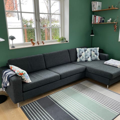Bolia sovesofa m/ chaiselong, stoffet er ‘Nantes’ i farven Dark Green. Nypris 34.869,- købt i 2020. Kunne godt trænge til rens, men er ellers i super stand og kun brugt som ekstra gæsteseng.