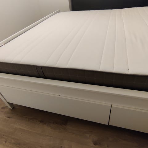 Jysk stel (se link) med Ikea madras og rullemadras og lameller. Er for stor til gæsteværelse og vores datter er flyttet for sig selv. Hele molevitten kan købes og afhentes for samlet 500 kr. Brugt men godt. Måske ville et nyt sæt lameller være godt givet ud. Nem at samle. Adskilt og lige til at hente. https://jysk.dk/sovevaerelse/sengerammer/sengeramme-kongsberg-160x200-graat-stof