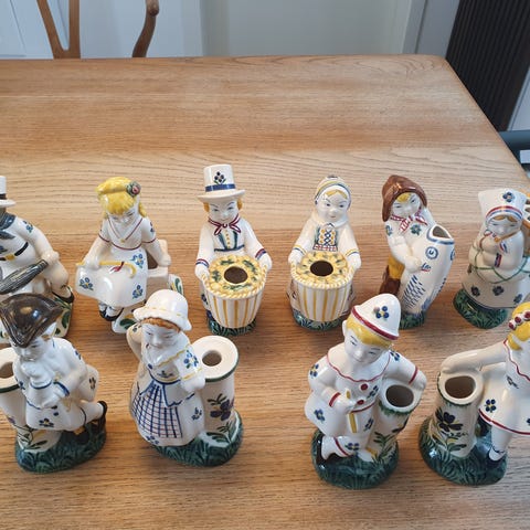 Aluminia Børnehjælps figur. Skovserpige fra 1945 Skovserdreng fra 1946. Hornblæser og Regimentets datter 1949.