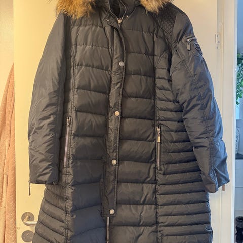 Jakke af mærket Junge, Grøn/blå, Næsten som ny, med ægte dun og stor hætte som kan lynes af. Dejlige lommer. Jakken kan lynes op bag i, hvis man fx skal cykle. Super kvalitet og kun brugt et par gange. En lille olieplet som kan fjernes - jeg ved ikke helt hvordan man gør? Jeg sender IKKE.