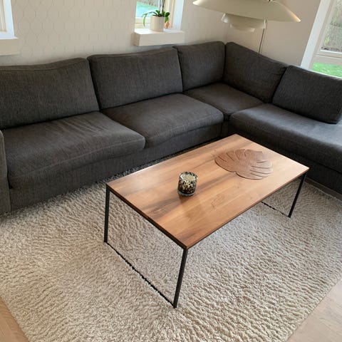 Pæn og velholdt grå hjørnesofa!. 2 m. dyb ved chaiselong ellers c. 90 cm bred. Ikke ryger hjem!. Står flot med minimale brugstegn!.