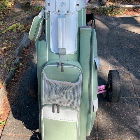 Nike Staff golftaske i sort med 5-rum er til dig, der vil have styr på udstyret og et professionelt udtryk på banen. Tasken er bygget med kvalitet og funktion i fokus – præcis som du forventer fra Nike. Med fem adskilte rum får du en tydelig opdeling af dine køller, så du hurtigt kan finde det, du skal bruge tee for tee. Den sorte farve giver et klassisk og stilrent look, der matcher enhver golfvogn og ethvert sæt. Nike Staff golftaske passer perfekt til dig, der spiller med omtanke og sætter pris på solidt udstyr. Uanset om du triller banen rundt i vogn eller går den med let skridt, giver tasken dig den rette balance mellem stil og funktionalitet – hver eneste runde.
