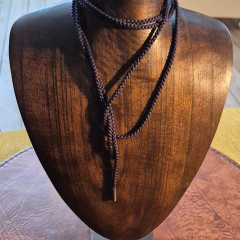 Ole Lynggaard sort silkesnor med oxideret sølv, ca. 130 cm