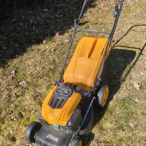 Viking MB 2.2 RT plæneklipper med en Kohler-motor med en effekt på 2,2 kW og med 2800 omdrejninger per minut. Plæneklipperen har fremtræk på begge forhjul. Motor fungerer fint men det ene forhjulsnav er slidt og skal udskiftes. Kan være skæv i rammen.