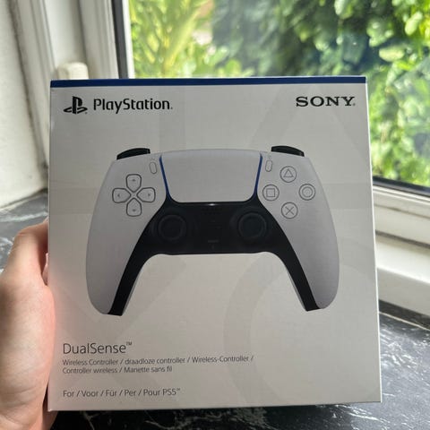 PlayStation 5 DualSense trådløs controller i sort farve. Den er kompatibel med PlayStation 5 konsollen og understøtter trådløs tilslutning.