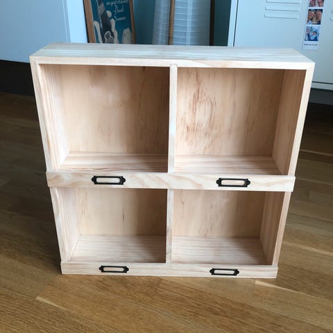 Der er ganske få brugsspor i form af lidt mærker i hylderne, men som ikke ses når der først står ting på. Derudover sidder der noget maling på bagdelen af “stativet”, der vender ind mod væggen, som derfor også vil blive gemt væk, når først hylden hænger.