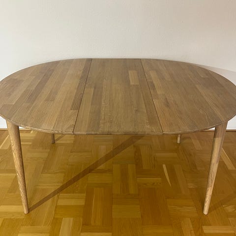Massivt EGETRÆ SPISEBORD RUNDT/OVALT med udtræk/tillægsplade