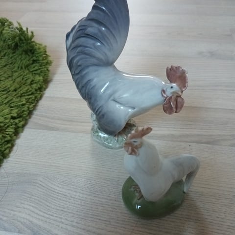 Royal Copenhagen 1025 og 1024 Porcelænsfigurer af hane og høne