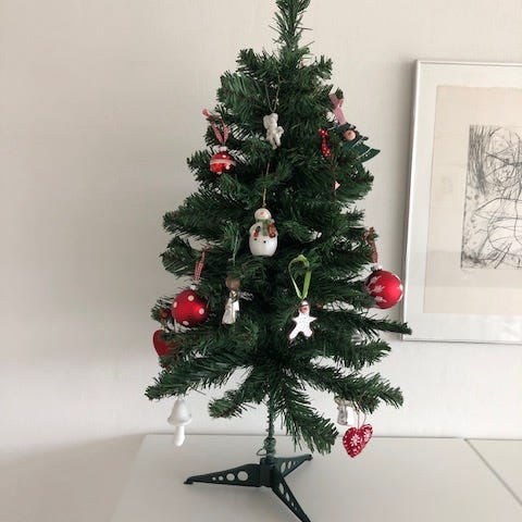 Kunstigt juletræ med 240 stk. lys i varm hvid, 180 cm høj, pose til opbevaring medfølger, brugt en gang jul 2024. Nypris 800 kr.