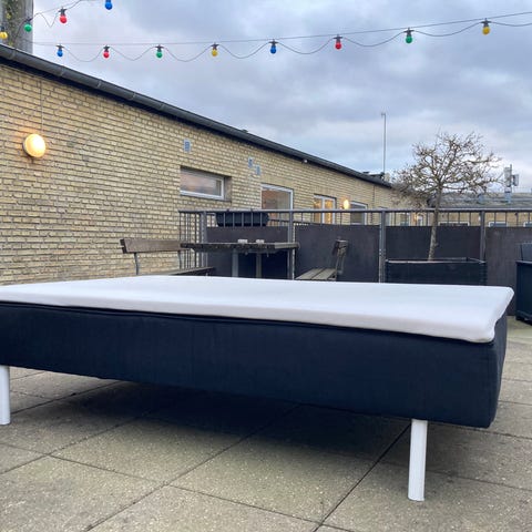 Topmadrassen er 7 cm og benene er 19 cm (dette er med i den samlede højde på 65 cm).