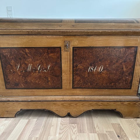 Antik Trækiste med malet dekor