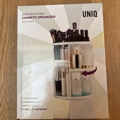 Plast organizer karussel med 4 hylder der kan flyttes fleksibelt rundt efter behov. Den kan drejes rundt. Kan skilles helt ad og sættes i opvaskemaskinen. Sælges for 75 kr.