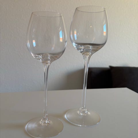 Holmegaard vinglas i klart glas. Sættet indeholder flere glas, der er egnet til servering af vin.