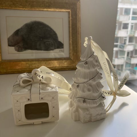 To fine juleophæng fra Pandora formet som julesokker og lavet i porcelæn.