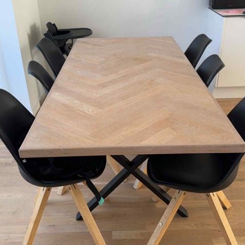 Bordet måler 200 x 100 cm og kan hentes i Valby på 3. Salg :))