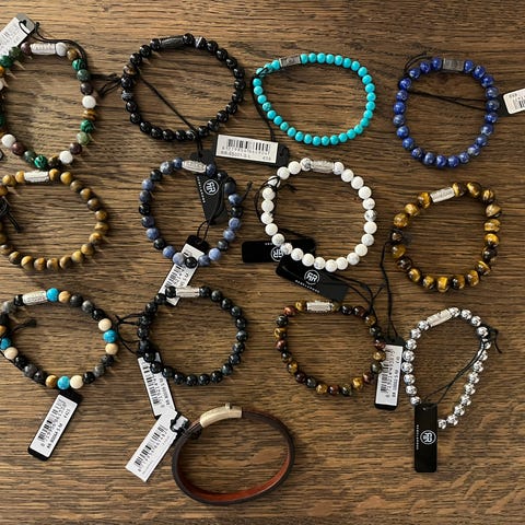 Armbånd inspireret af Sabrina Carpenters tekster, parfumer og albums. Der er 13 armbånd, og prisen er samlet for alle 13 armbånd. Nogle armbånd er lavet med elastik og andre lavet med lås og kæde, så de ligner rigtige armbånd. Perfekte at bytte med andre fans, da størrelserne er forskellige.