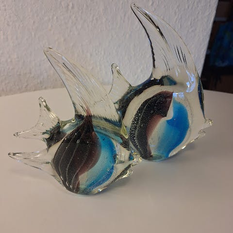 Glasfisk med hvidt og rødt markering på hoved.