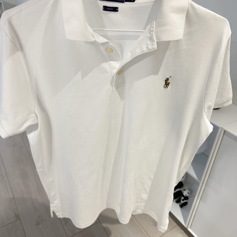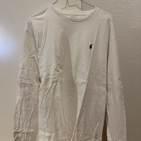 Hvid Ralph Lauren T-shirt str. S. Er lidt forvasket. Har en lille plet ude på ærmet foran og bagved. Se på billedet om det betyder noget. Derfor den lave pris. Sælges for 100 kr.