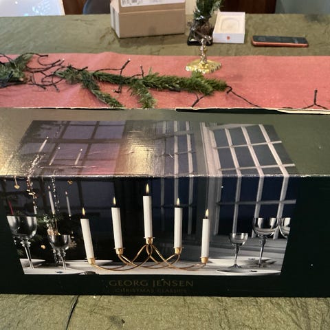 Georg Jensen Stjerne lysestager designet til jul. Lysestagerne har en stjerneform og er udført i metal med en blank, gylden finish. De er beregnet til at holde stearinlys på størrelse med juletræsstearinlys og kan anvendes som dekoration i juletiden.
