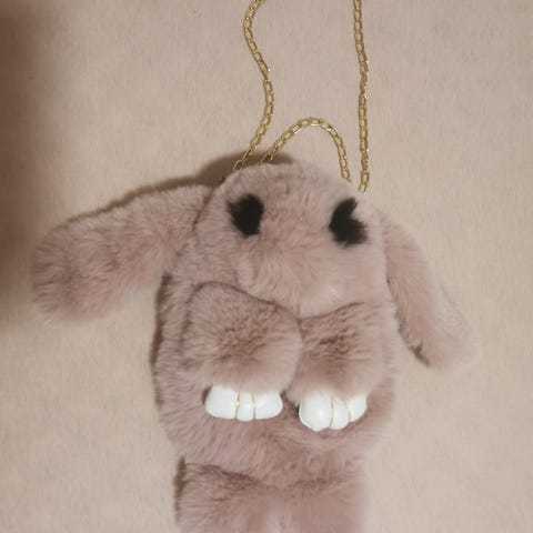 Sød lille taskei kunstpels. Lavet som kanin og med kæde der kan sættes crossbody.