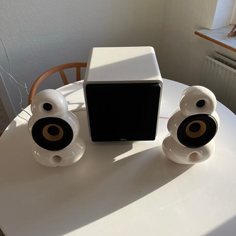 Virker perfekt og med utrolig god lyd (særligt taget størrelsen i betragtning). Kan også gøre sig godt som del af fx surround sound setup.
